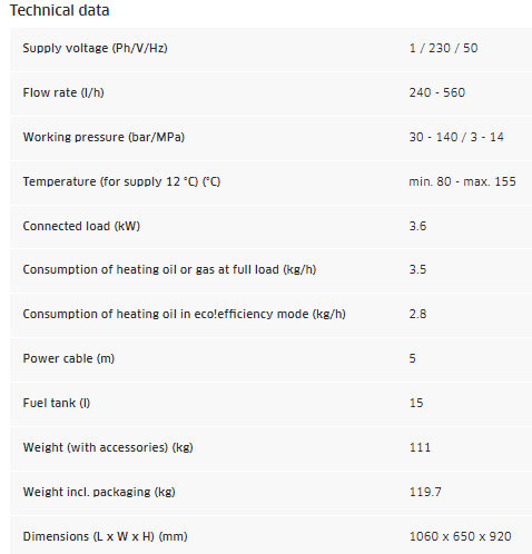 Economical, powerful and convenient: the HDS 6/14-4 C is a single-phase hot water high-pressure cleaner in the HDS Compact class with 4-pole, water-cooled electric motor and offers a wide range of impressive features. The unique eco!efficiency mode ensures efficient, economical operation. While the EASY!Force high-pressure gun makes use of the recoil force of the high-pressure jet to reduce the holding force to zero, the EASY!Lock quick-release fasteners enable handling that is five times faster than with conventional screw connections, without losing any robustness or longevity. With Servo Control, you can adjust the water flow and pressure directly on the trigger gun without having to set it down. The practical single-button operation and practical storage compartments for nozzles and other accessories and tools demonstrate the sophisticated operating concept. The machine is also equipped with large wheels and a steering roller, which ensure a high level of mobility, and features a robust chassis with integrated tanks for fuel and cleaning agents.