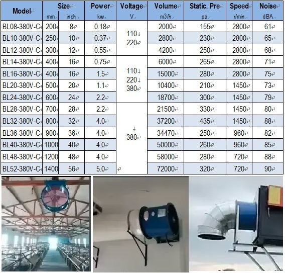 “MP” Low Noise Axial Flow Fan are widely used in industrial and mining enterprises, civil construction wall exhaust, post air, ventilation pipe. Also used in chemical industry, light industry, medicine, metallurgy, power plants, transportation and warehousing workplace ventilation and air conditioning systems.
