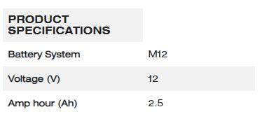 Milwaukee M12™ High Output™ 2.5ah 鋰電池 / 2.5ah Battery M12hb2.5