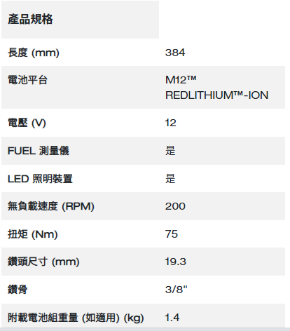 Milwaukee M12 Fuel™ 3/8" Extented Reach Ratchetm12 Fuel™ 無碳刷3/8"加長版衝擊棘輪 (Fir38lr-0)