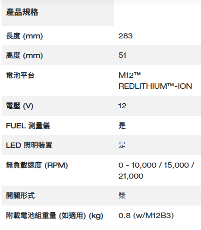 - 靈活的電池系統:可搭配所有的 MILWAUKEE™ M12™ 鋰電池使用