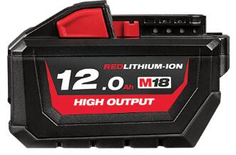 - The new M18™ 12.0 Ah HIGH OUTPUT™ battery pack provides up to 50% more power vs M18™ REDLITHIUM™-ION battery packs