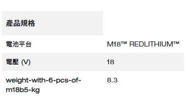 - 在 3 小時內可為 6 個 M18B5 電池充電