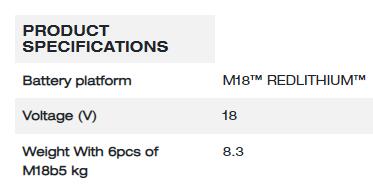 - Charges 6 M18B5 Batteries in under 3hrs