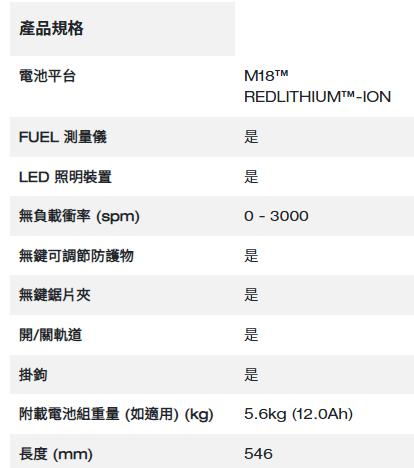 - POWERSTATE™ 無碳刷馬達:專為 M18 FUEL™ 無碳刷系列 SUPER SAWZALL™ 往復鋸所開發設計,輸出功率和效能相當於 15A 的插電式往復鋸