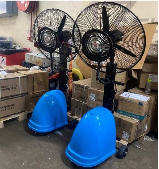 Effective Cooling Solution for Large Spaces: This mist cooling fan is designed for outdoor use, in hotels, garages, and commercial settings, providing a cooling solution for large areas.