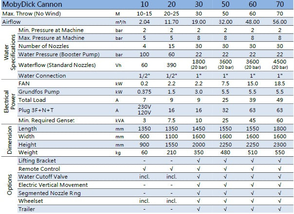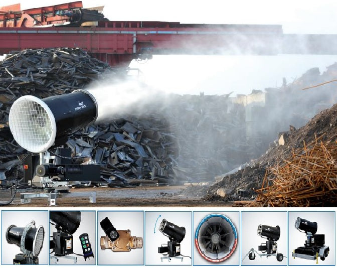 The MobyDick Dust Control Cannon offers companies from various industries a solution to their dust emissions. The Cannon Line offers a variety of proven standard solutions with throw ranges from 10 to 70 meters and is ideal for companies that need a quick and effective solution.