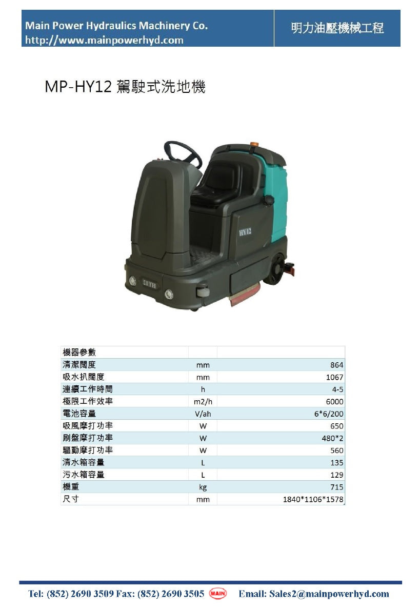 MP-HY12 Ride-On Scrubber Dryer 駕駛式洗地機