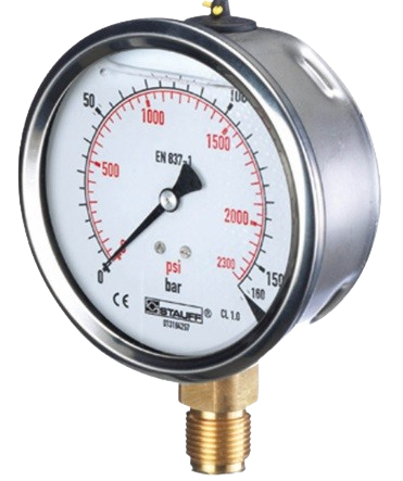 Stauff Stainless Steel Pressure Gauge is a reliable and accurate instrument for measuring pressure up to 250 bar. With a 63mm diameter and a range of 0-250 bar, it also has a scale in both bar and PSI for easy reading. Its stem mounting and G 1/4 BSPP process connection make it a convenient addition to any industrial setting.