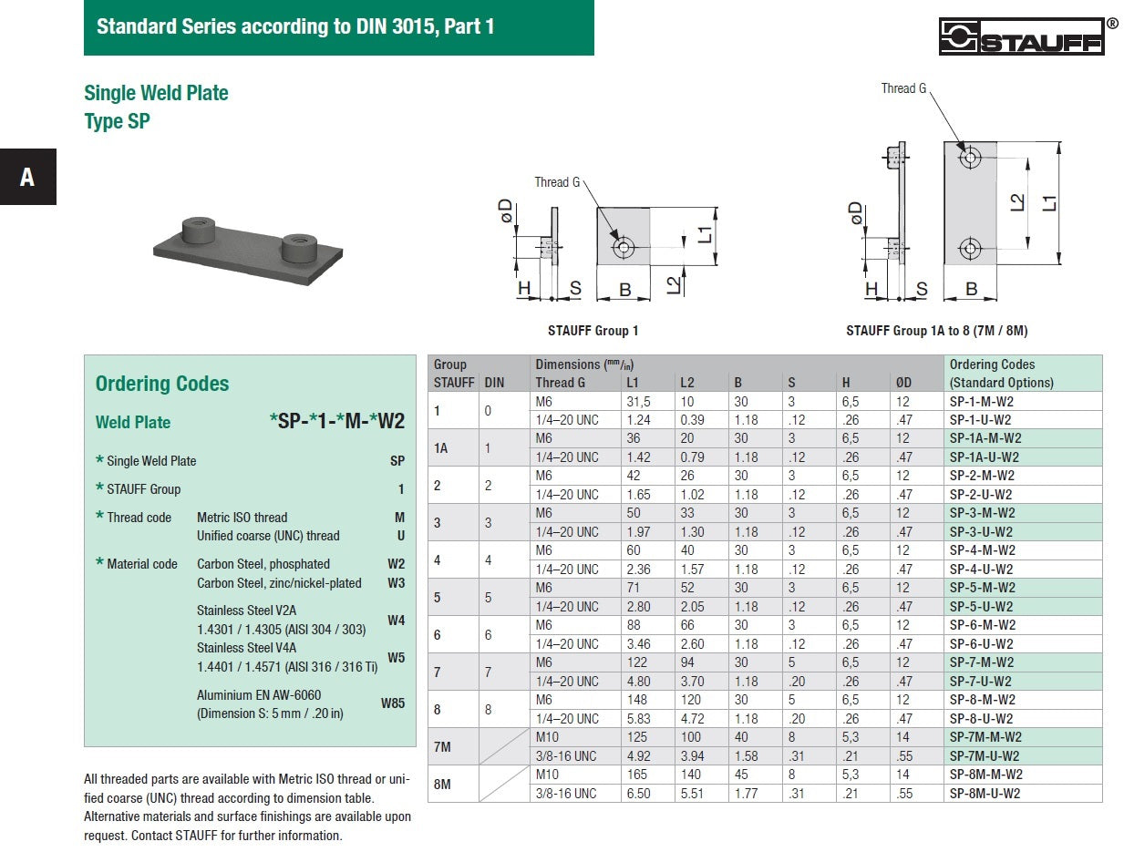 Stauff Stanard Series DIN 3015 - Single Weld Plate