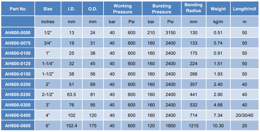 ‘TECHFLEX AH600 HEAVY DUTY AIR HOSE WPSI 600’
