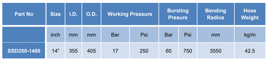 ‘TECHFLEX SSD250 SUCTION/DELIVERY HOSE WPSI 250’